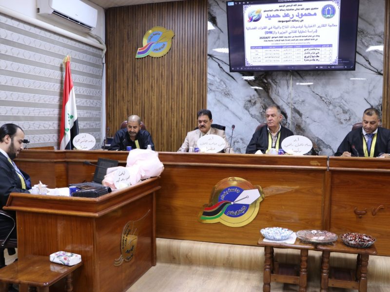 نوقشت في كلية الإعلام بجامعة بغدا رسالة الماجستير الموسومة “معالجة التقارير الإخبارية لموضوعات المناخ والبيئة في القنوات الفضائية – دراسة تحليلية لقناتي الجزيرة وDW” ، للباحث في قسم الإذاعة والتلفزيون محمود رعد حميد.