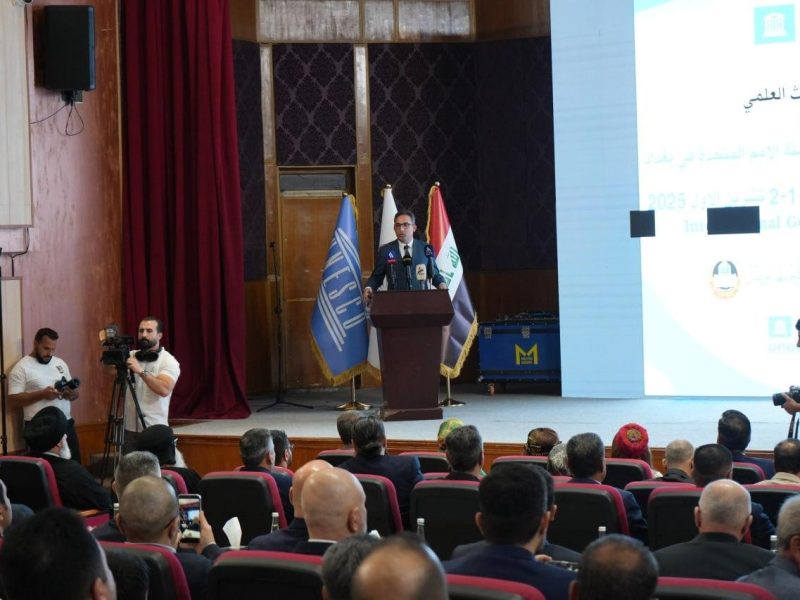 وقال وكيل وزارة التعليم العالي والبحث العلمي، حيدر عبد ضهد، في كلمته خلال المؤتمر، إن “هذا المشروع يربط الجامعات العراقية المتميزة في مجالات البحث العلمي بنظيراتها العالمية، ويعكس العلاقات المتميزة في البحث العلمي والتبادل الثقافي بين العراق والمؤسسات العلمية العالمية، عبر مؤسسة اليونسكو التي تعمل على ربط الجامعات العراقية بالباحثين والجامعات العالمية المتميزة”.