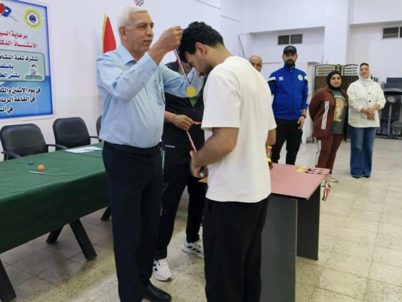 حققت كلية الإعلام بجامعة بغداد إنجازاً رياضياً جديداً بفوزها بالمركز الأول في بطولة جامعة بغداد لكرة الطاولة للطلبة، التي أُقيمت اليوم الإثنين على ملاعب كلية الهندسة الخوارزمي بمشاركة ٢٢ كلية من مختلف تشكيلات الجامعة.