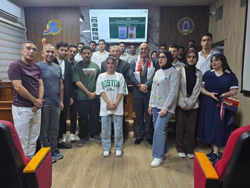 واستضافت الندوة رئيس الاتحاد العراقي للرياضة للجميع الدكتور عبد العزيز نايف، الذي قدم محاضرة تناول فيها الدور الحيوي للرياضة في بناء الإنسان وتنمية المجتمع، مؤكدا أن “الرياضة لم تعد ترفا، وانما أصبحت حاجة أساسية يجب أن نغرس ثقافتها بين الأساتذة والموظفين والطلبة على حد سواء، لما تمثله من ركيزة للصحة النفسية والجسدية والإنتاجية”.