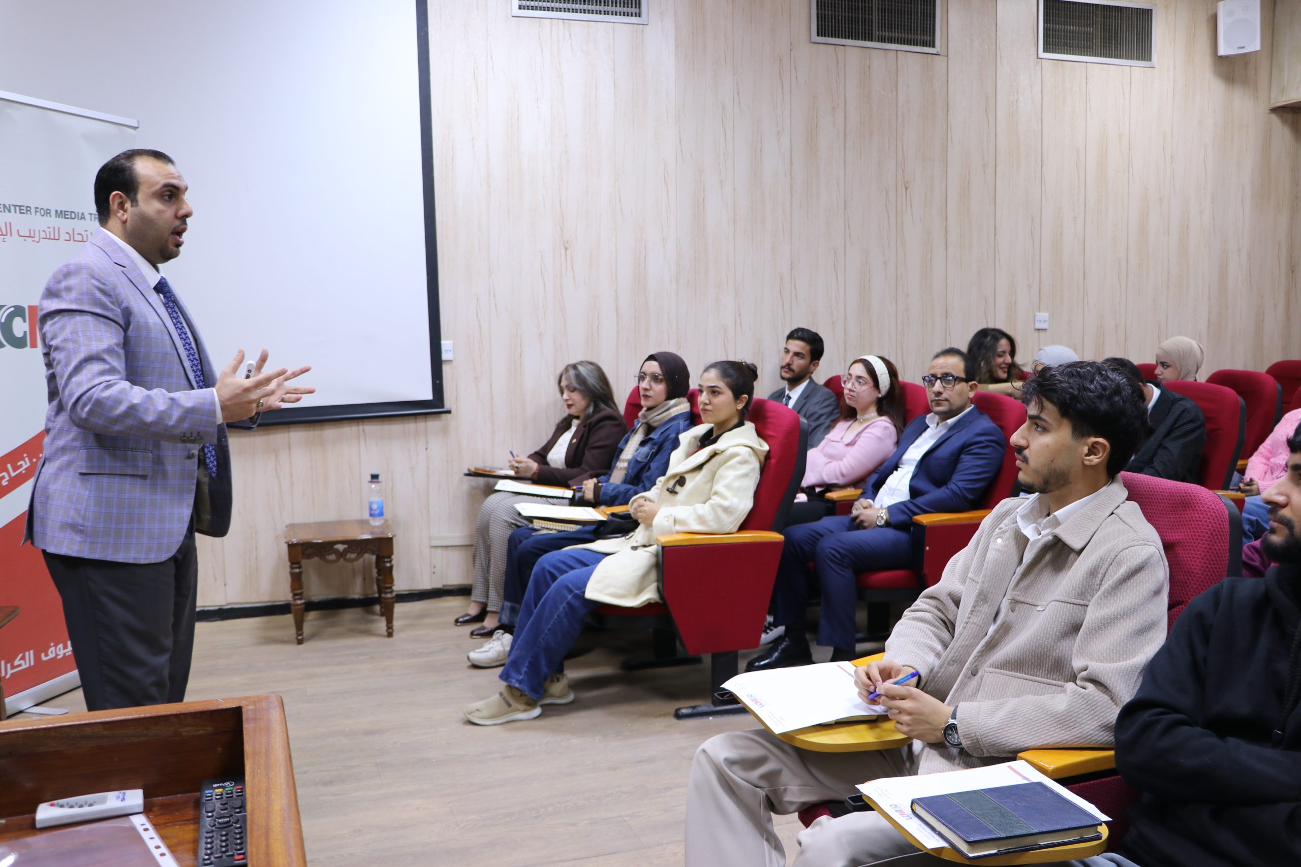 وبدأت فعاليات هذا الأسبوع بمحاضرة عملية قدمها الأستاذ محمد الخزاعي مدير مركز UCMT.IQ للتدريب الإعلامي، ضمن محور كتابة التقارير والتحقيقات التلفزيونية. وتناول الخزاعي خطوات إنتاج التحقيق التلفزيوني، وطرق جمع المعلومات وبناء القصة، إضافة إلى مهارات السرد البصري وتحويل الأفكار الى مواد تلفزيونية احترافية.